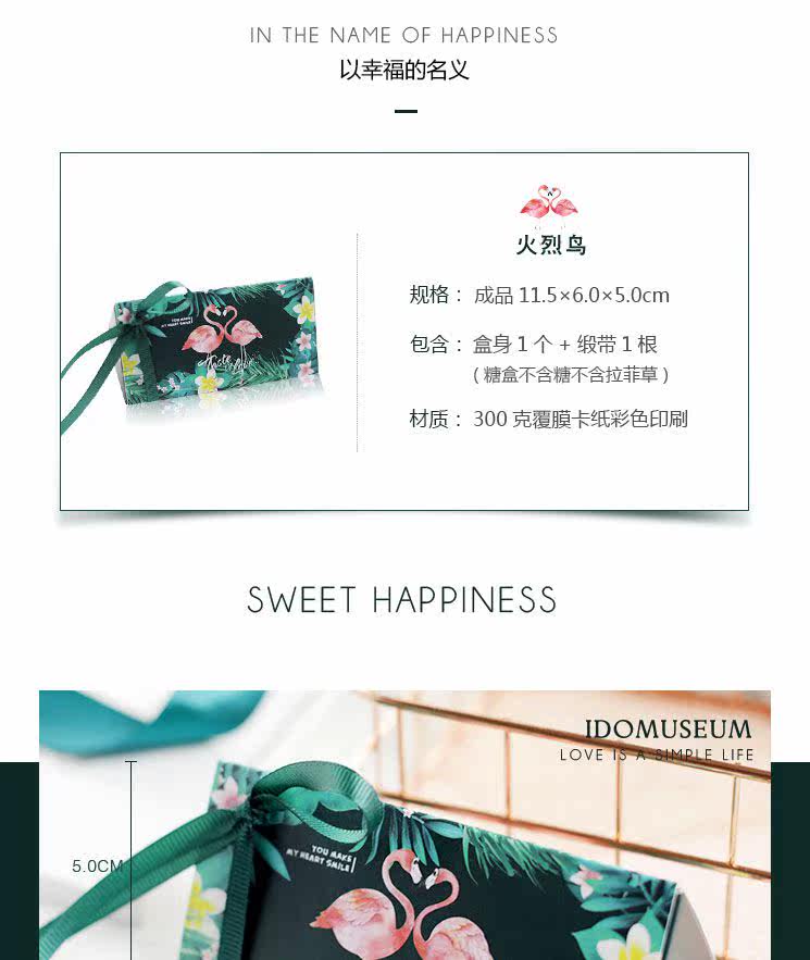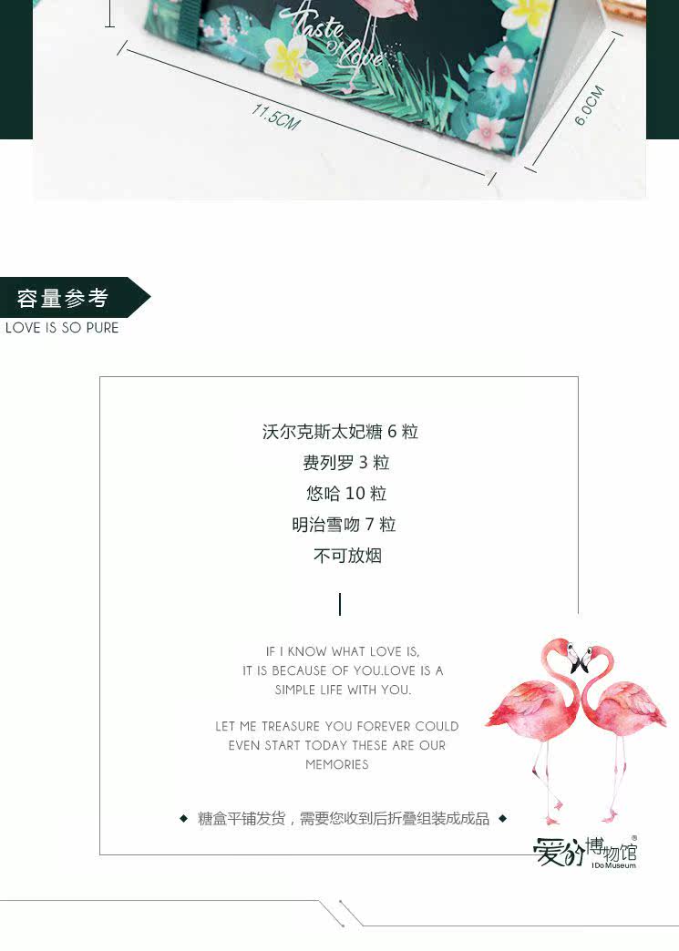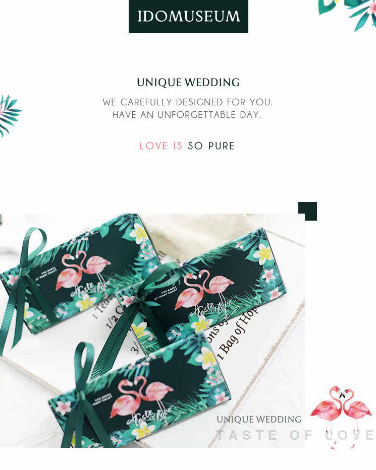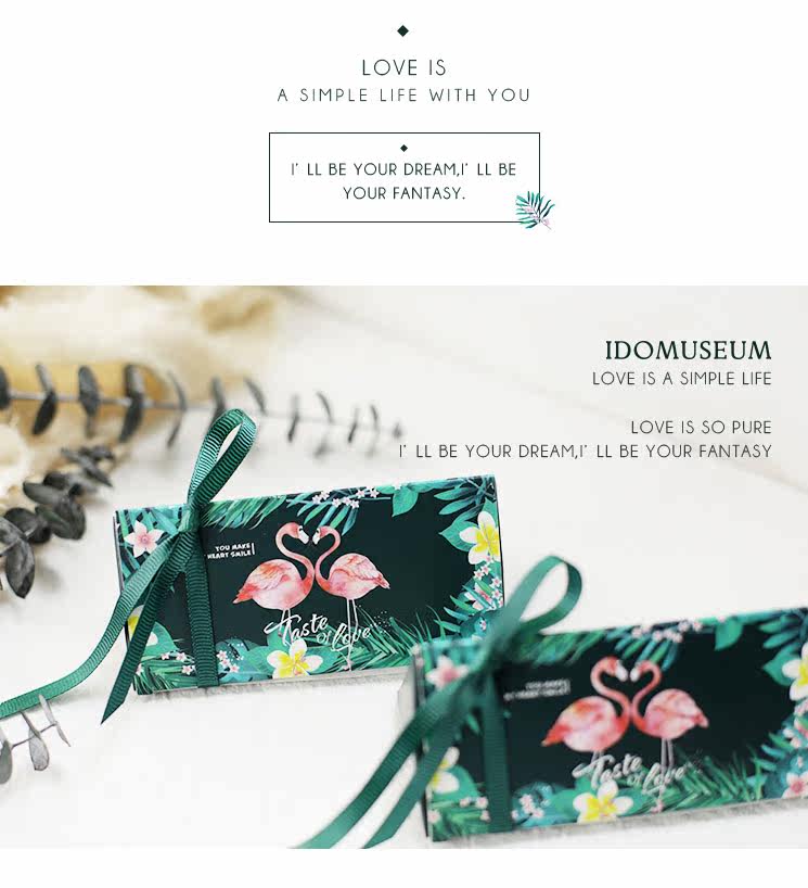 爱的博物馆の森系火烈鸟欧式婚礼喜糖包装纸盒创意结婚喜糖盒婚庆