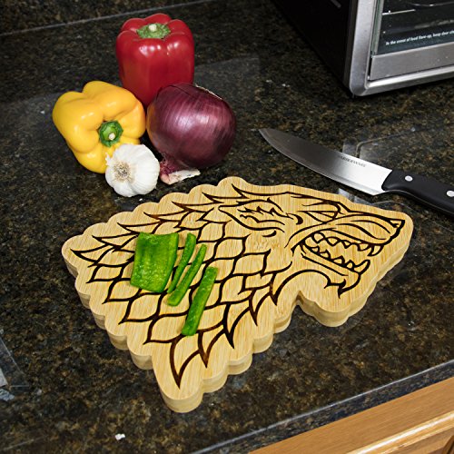 Game of Thrones House Stark Bamboo Cutting Board - Stark Dire Wolf Sigil Motif - 10” x 7.5”