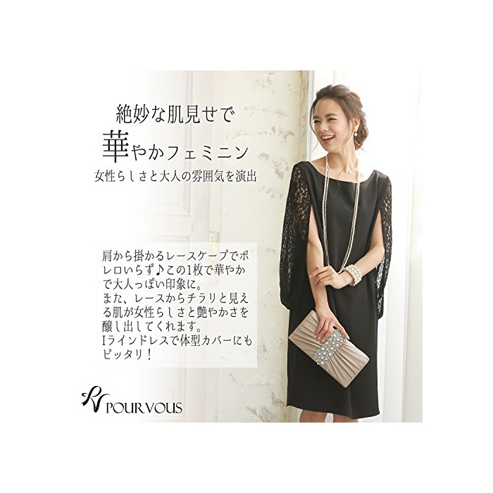 PourVous(풀《―》) (풀《―》) PourVous원피스 드레스 파티 드레스 여성 정장 Mrs. 포멀 원피스 불리 결혼식 2차 모임 피로연 크 큰 사이즈 반소매슬장 I라인 자카드 2126
