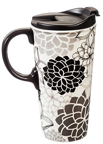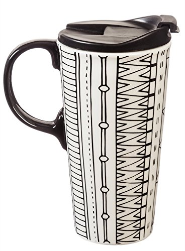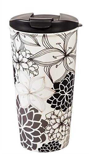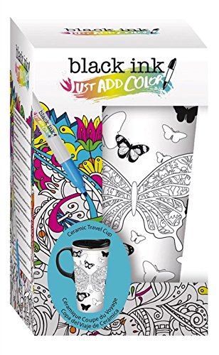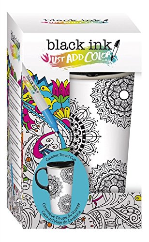 -. Feature : Personalize your travel mug with this coloring-book inspired design / Mug is heat resistant ceramic; fitted, double-lip plastic lid features 3 rings of silicone to prevent leaks / Top-rack dishwasher and microwave safe / Holds up to 17 ounces and comes packaged in a coordinating gift box / Color with the included food-safe markers and bake to make permanent