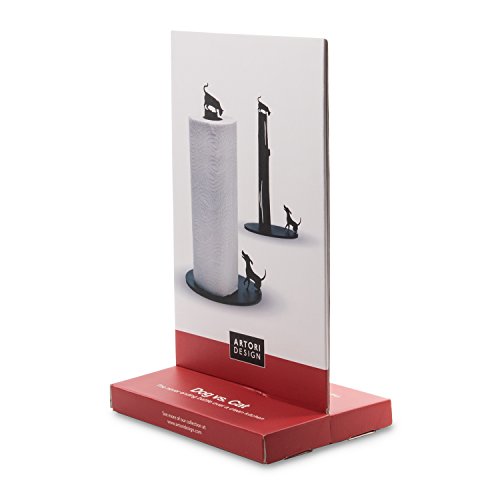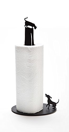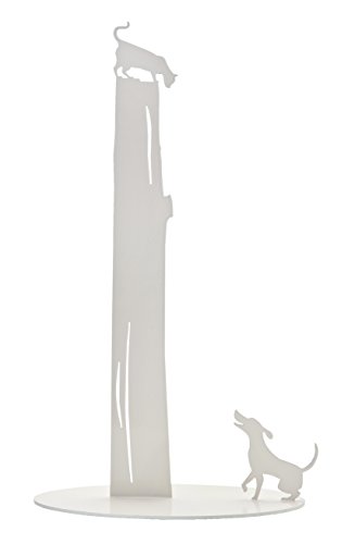 Artori Design Dog Vs. Cat Paper Towel Roll Holder Dispenser Stand - White. Tabletop Counter-top, Kitchen Gift.