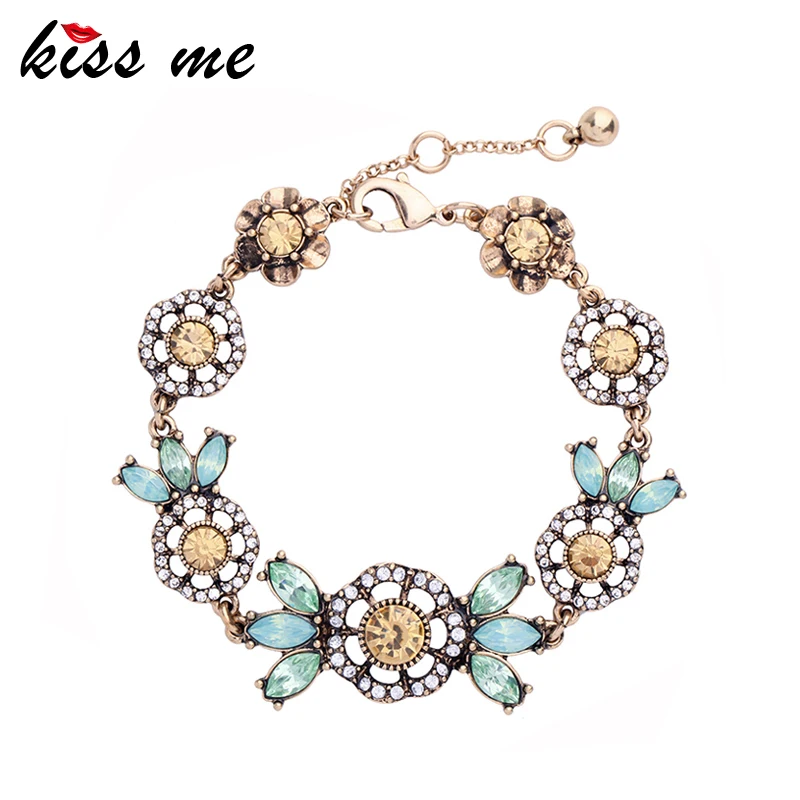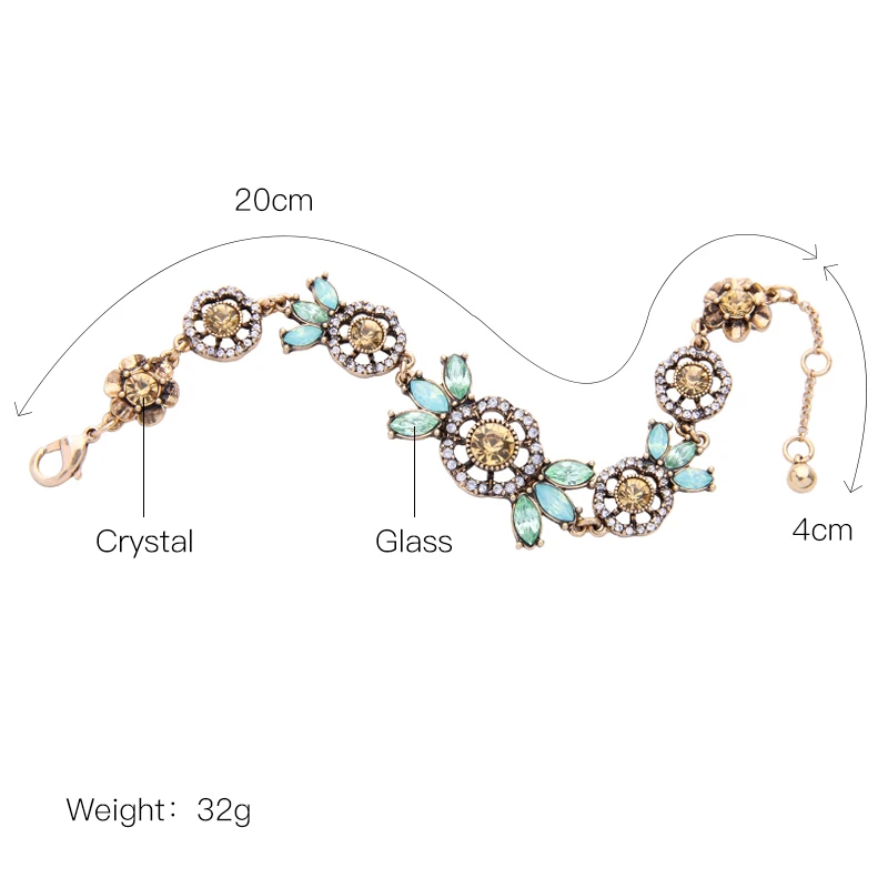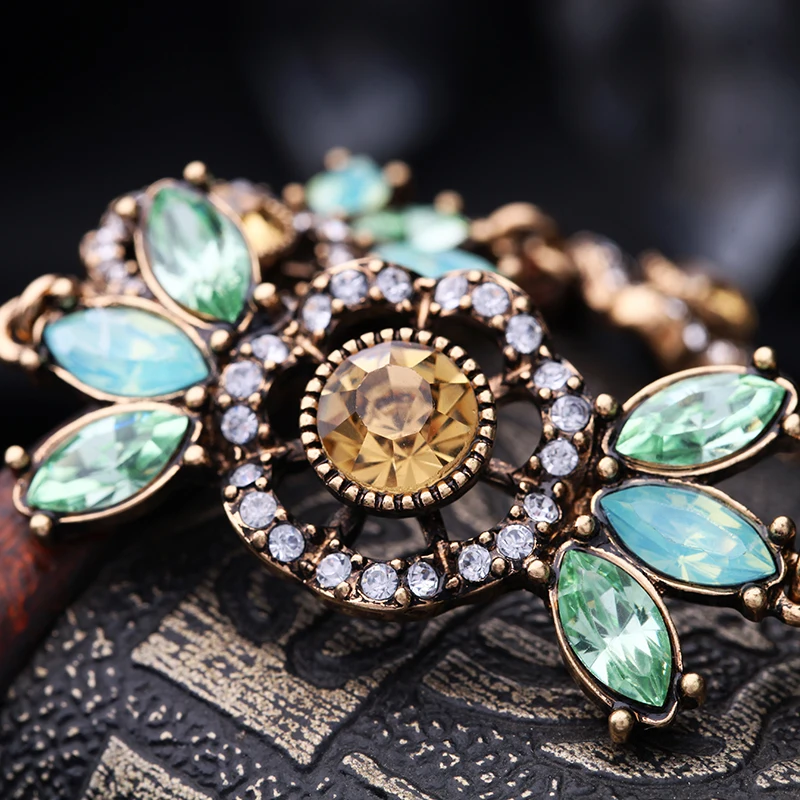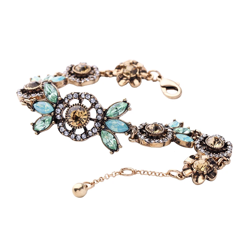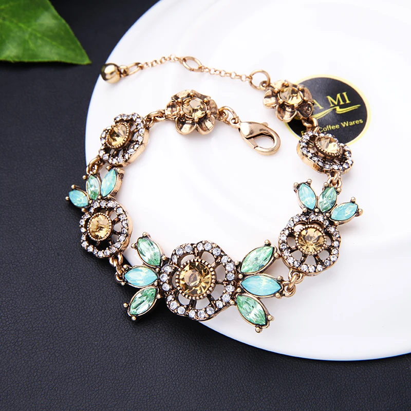 Production name ::Green & Champagne Crystal Flowers Charm Bracelets for Women