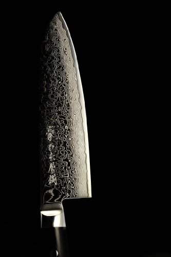 Blade is sg2 steel clad with 101 layers of high-carbon stainless steel, producing the layered damascus look