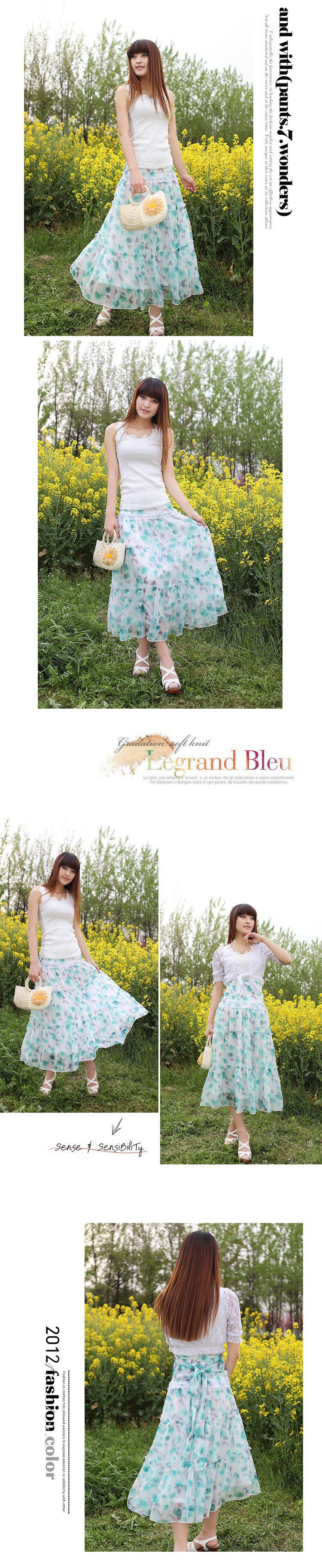 商品描述:蝶恋 2012夏装新品 波西米亚风碎花蕾丝花边两穿长裙百褶裙半身裙