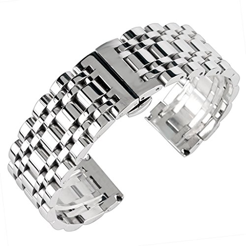 -. Title : 22mm Solid Stainless Steel Watch Band Silver 316L Push Button Hidden Bracelet Watch Strap for Mens Womens 2.2cm