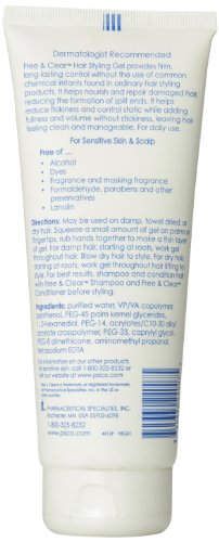 Free & Clear hair styling gel provides firm, long-lasting control without the use of common chemical irritants found in ordinary hair styling products. Holds hair in place without leaving greasy or sticky residue. Nourishes and repairs damaged hair, reduces flakiness, and adds body, leaving the hair manageable and static-free. Ideal for sensitive skin and scalps.Feature