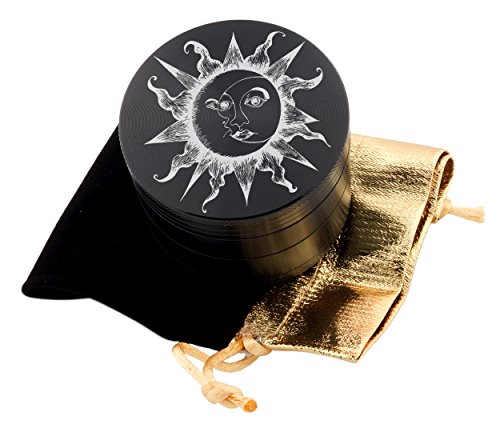Sun & Moon Laser Etched Design 4pcs Large Size Herb Grinder With FREE Scraper & Velvet Pouch Item # ETCH-G012317-233