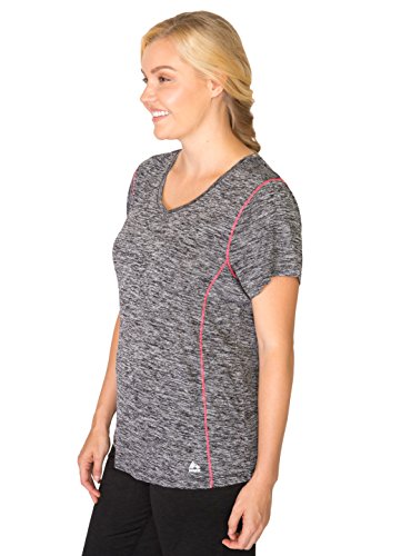 -. Binding : Apparel -. Brand : RBX -. Department : womens -. Feature : Women's Plus v-neck short sleeve performance tee shirt / Tagless neckline with contrast color taping prevents irritation / Shaped shilhoutte for a flattering fit / Stretch construction moves with you for a full range of motion while you work out / X Dri technology wicks sweat -. Model : ACR2-SSPLUSSPACEV -. PackageQuantity : 1 -. ProductGroup : Apparel -. ProductTypeName : SHIRT -. Title : RBX Active Women's Plus Space Dye Short Sleeve V-Neck Tee Shirt