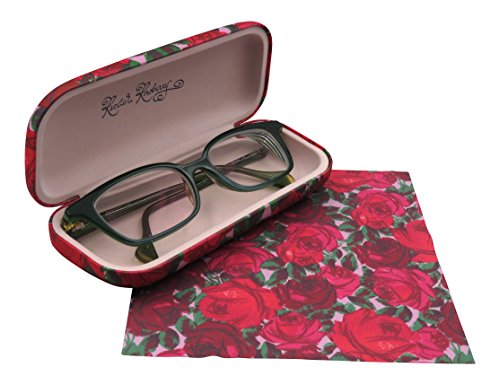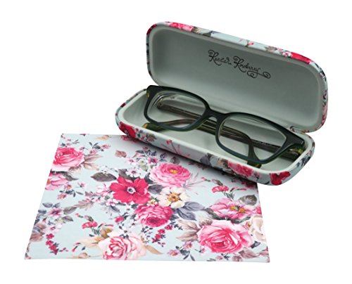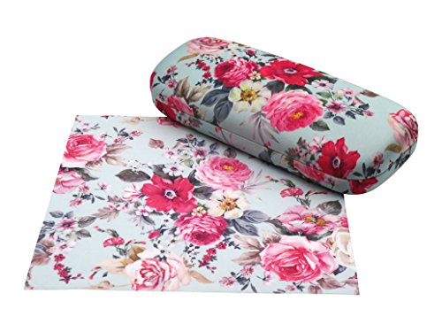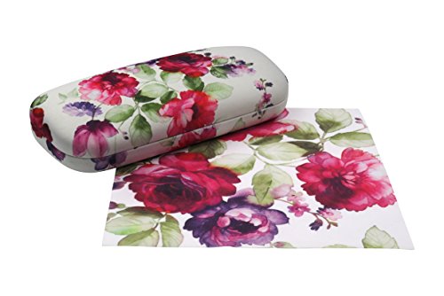 Rachel Rowberry Floral Eyeglass Case with eyeglass cleaning cloth | Medium hard eyeglass case in a unique Microfiber Smooth Finish (AS126 Rose Bouquet )