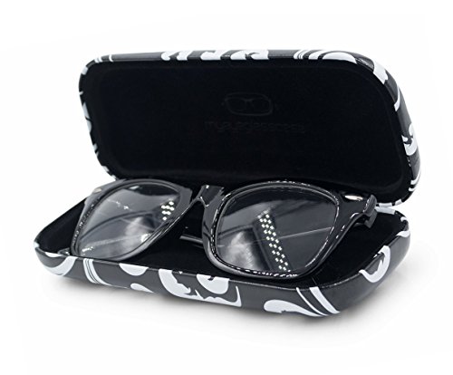 Hard Eyeglass Case / Sunglasses Cases | Protects Glasses w/Medium Sized Frames | Men & Women | AS126 Paisley Black/White
