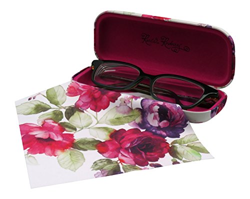 Rachel Rowberry Floral Eyeglass Case with eyeglass cleaning cloth | Medium hard eyeglass case in a unique Microfiber Smooth Finish (AS126 Vintage Rose)