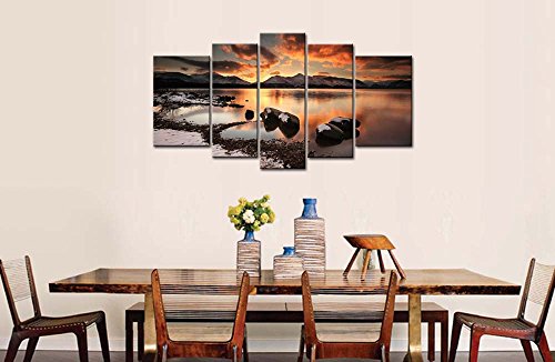 -. Title : So Crazy Art® - Canvas P.R.Int Wall Art Painting For Home Decor,Mountain Lake On A Winter Evening Rock Ice Beach Snow Mountain 5 Pieces Panel Paintings Modern Giclee Stretched And Framed Artwork Oil The Picture For Living Room Decoration,Landscape Pictures Photo P.R.Ints On Canvas
