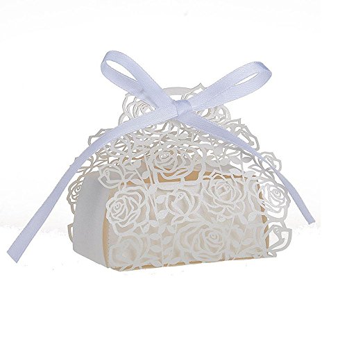 HappyEvents White Candy Box Packaging Wedding Favor 50pcs Romantic Rose Laser cut Hollow Carved