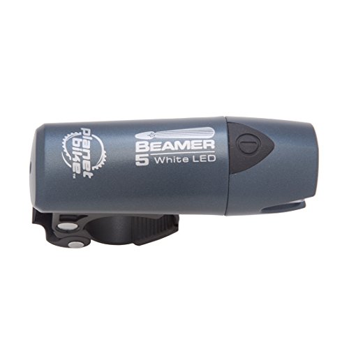 Amazon.com Product Description Whether you're a 24-hour racer or a super commuter, the Beamer 5 LED bike light from Planet Bike gives you the power to light up the night. The light includes five white Nichia eXtreme v2.0 LED lights that help you see clearly at night while alerting drivers and other cyclists to your presence. The lights not only illuminate your path, but they're also four times brighter than many earlier LED incarnations, ensuring that you don't miss certain landscape features because the lights are too dim. Plus, the Beamer 5 is a breeze to install, with an easy-to-use Quick Cam bracket that mounts, adjusts, or comes off in seconds without tools. The Beamer 5, which runs for up to 100 hours on two AA batteries (included), offers both flashing and steady modes and carries a limited lifetime warranty. About Planet Bike In November of 1996, Planet Bike was founded in Madison, Wisconsin. In many ways, Planet Bike began as a social experiment that dedicated itself to doing business in a different way. Instead of being just another company that develops and sells products with profit as its end goal, Planet Bike wanted to help bring about positive change for people, their communities, and the environment. Despite being a simple machine, the people at Planet Bike have always believed that the bicycle has great potential to help improve the world and the lives of the people in it. From the start, they have embraced an alternative corporate purpose which seeks to help get more people on bicycles by making communities friendlier places for the self-propelled. By donating 25% of company profits to causes that promote and facilitate bicycle usage, Planet Bike hopes to make an impact. Social experiments aside, Planet Bike was born from the heart of a cyclist with a goal of making innovative, high quality, and practical bicycle accessories. Simply put, they strive to design and develop the best bicycle products in the world. In the company's short ten year history, they have made important product innovations within the bicycle industry. Advancements include the 4-line computer which is now a standard in the industry and the world's first self-contained HID light. Not bad for a company that ten years ago started as a one man operation. Today, while still a small company, Planet Bike continues to evolve and improve their product line with the goal of always striving to build accessories that make it easier for people to ride their bikes. Since 1996, Planet Bike's financial support of the grassroots bicycle movement has totaled $500,000. By 2010, they have made a goal to donate $1 million to organizations that are dedicated to making America a friendlier place for cyclists.