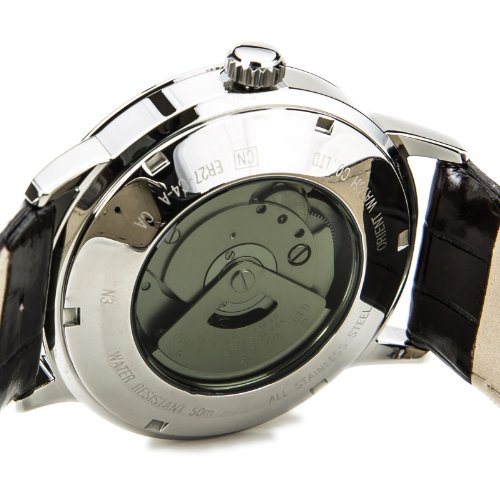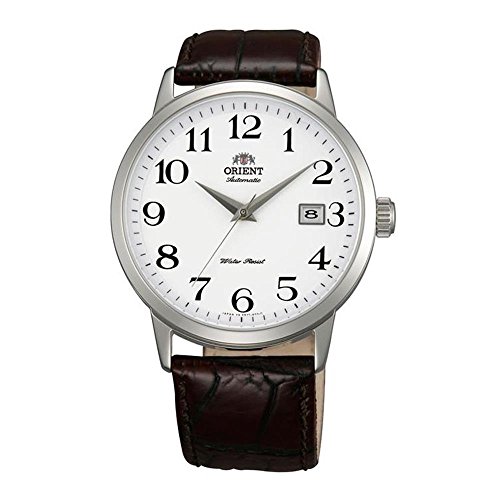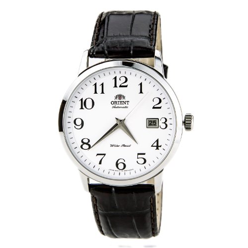 ReleaseDate : 2012-11-15 Studio : Orient Publisher : Orient Binding : Watch Product Description The new Orient Symphony dress watch features an Orient made 21-jewel automatic movement, a white dial with bold black numeral hour markers, matching silver hands, a solid screw-in case back, date window at 3:00, a mineral crystal, and a brown leather strap. Great watch for wearing to the office or out for dinner. It is nice and thin and wears well on all wrist sizes. Comes with a 41mm x 12mm stainless steel case and features up to a 40 hour power reserve. Features Movement: Orient 21-jewel Automatic (self winding) Case: Stainless steel, 41mm x 12mm thick Back: Solid screw-in back Crystal: Hardened Mineral Band: Brown leather strap, buckle closure, 20mm. Water Resistant: 50 meters Warranty: 1 Year 0