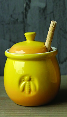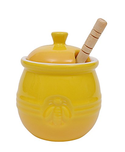 Creative Co-Op Stoneware Honey Pot with Wood Honey Dipper, Yellow