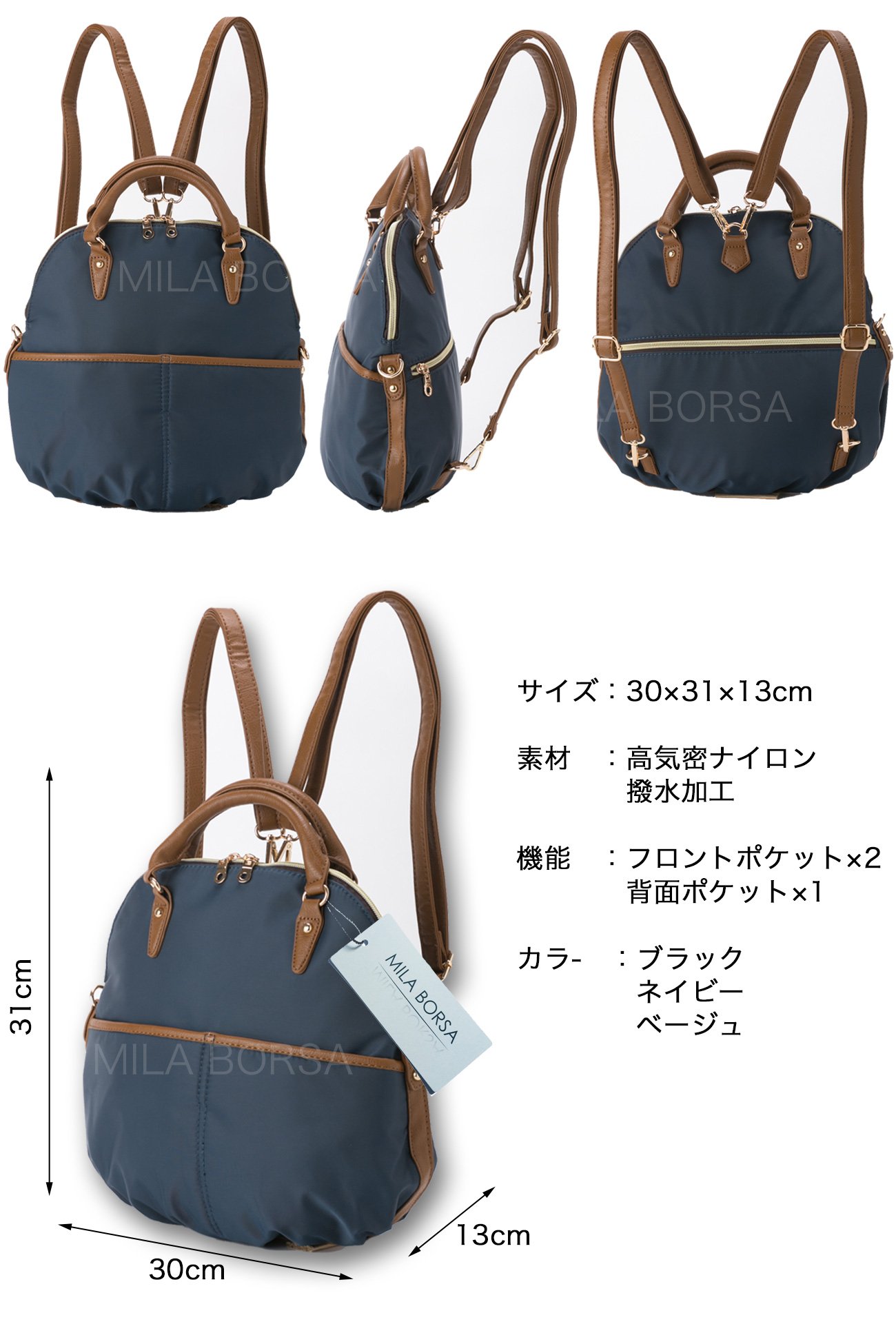 [Specifications] Size: 30 cm × 31 cm × 13 cm Material: High airtight nylon, water repellent processing function: A4 size correspondence 3way specification It is a popular recommended tote bag in Amazon ranking.