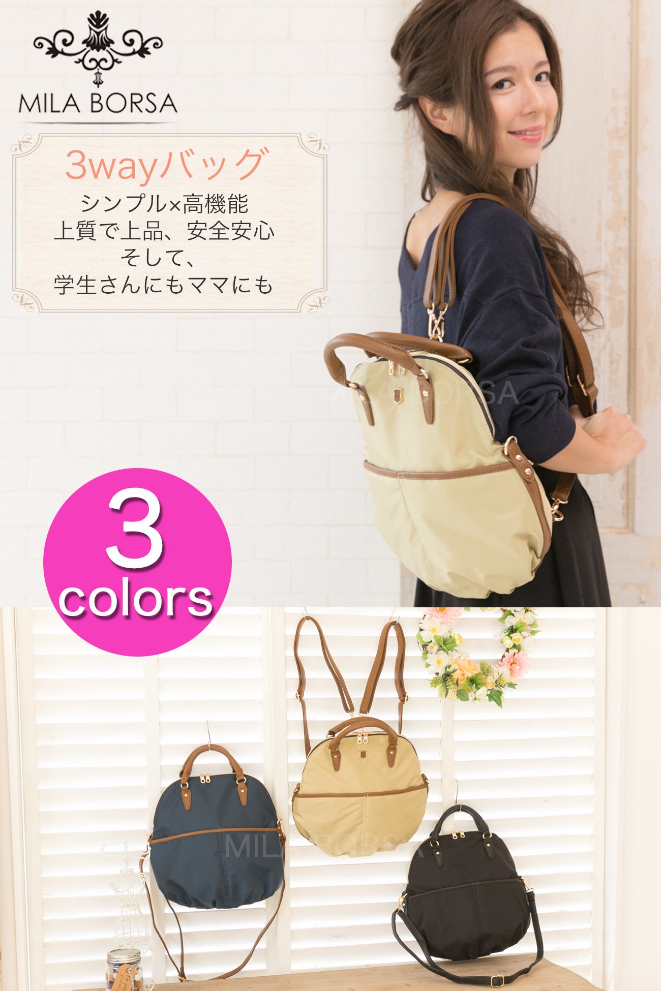【Popular 3 WAY Bag】 It is a popular bag full of functionality in a small style.