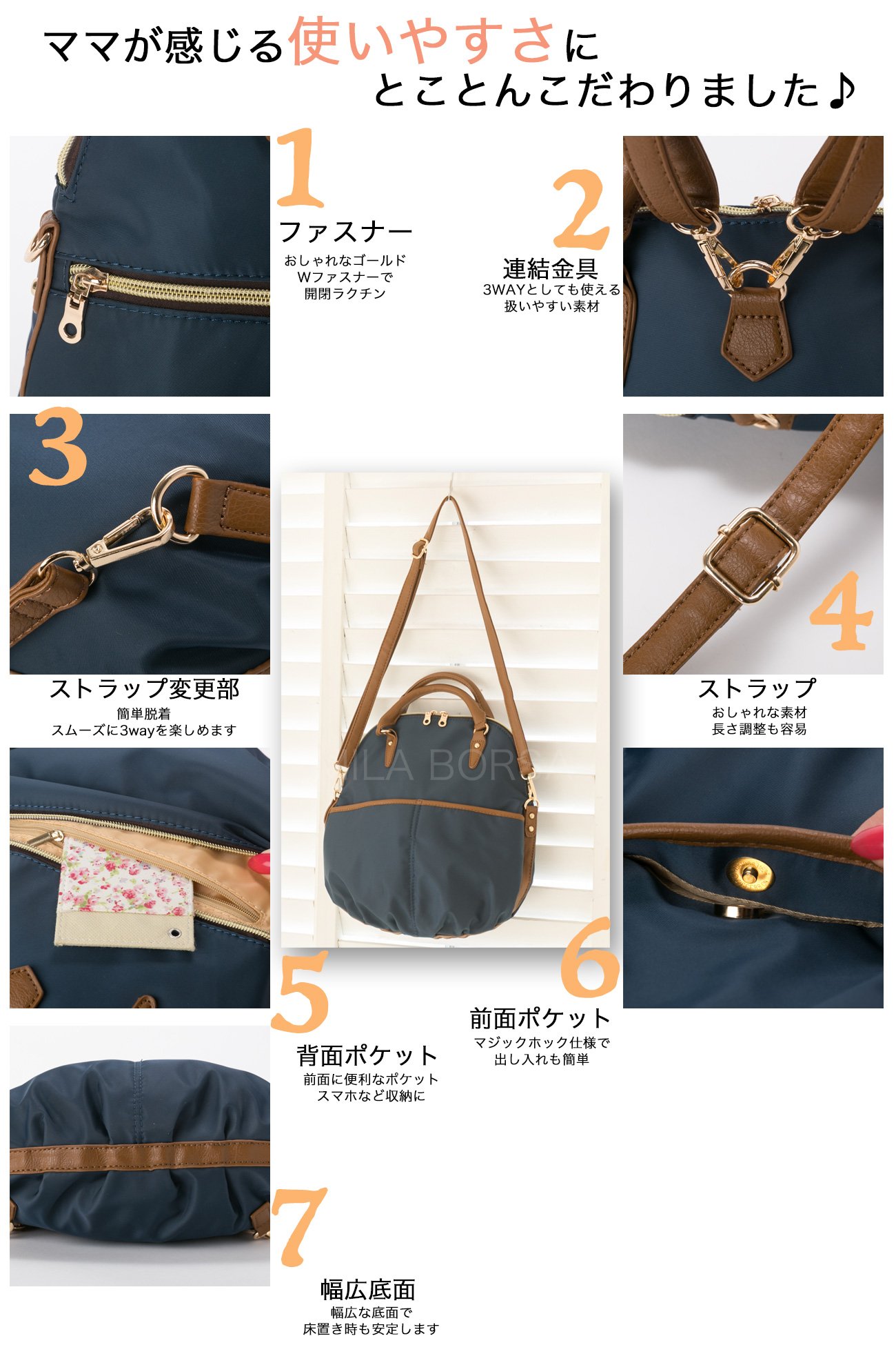 The point that is superior in convenient storage capacity and functionality is the reason of popularity ♪ [Leather material is fashionable] Handles and shoulder belts, leather materials are adopted on the bottom, finished in an elegant adult design.