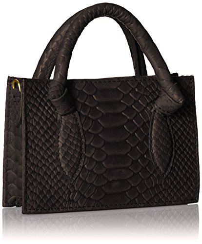 -. Feature : Small top-handle bag in snake-textured leather with detachable, adjustable cross-body strap