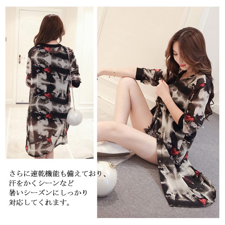 | さっと羽織るだけで今年らしいほんのりレトロな着こなしに総柄で存在感を放つ、ロングシャツカーディガンの登場です。シンプル無地からトレンドな総柄まで揃うカラーバリエーションも嬉しい。ロング丈でさりげないこなれ感を演出。さりげなく体型カバーもできちゃうのが嬉しいポイント!透け感のある素材が涼しさを感じさせるデザイン☆暑い時期にもさらりと着られるのが魅力のひとつです。長めのお袖で、手首もしっかりと覆えます。さらに速乾機能も備えており、汗をかくシーンなど暑いシーズンにしっかり対応してくれます。レイヤードコーデを存分に楽しめるこなれ度高めのおススメアイテムです♪ | |
