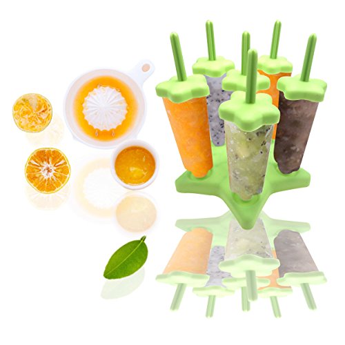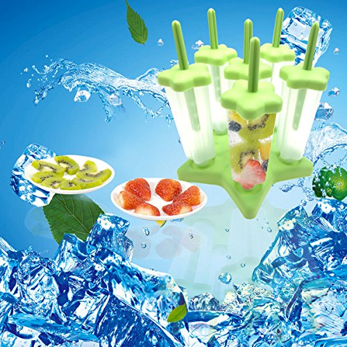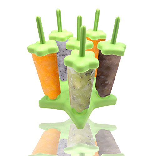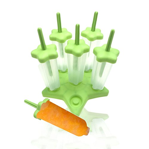 ZICA Set of 6 Popsicle Ice Pop Molds with Tray Make Your Own Healthy Frozen Fruit Juice Popsicle (green 1)