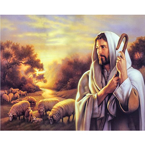 FKUO Large 5D DIY Diamond Painting "Jesus Shepherd" Religious belief Embroidery 2.8mm Round Diamond embroidery Fashion home decor (50X40 CM)