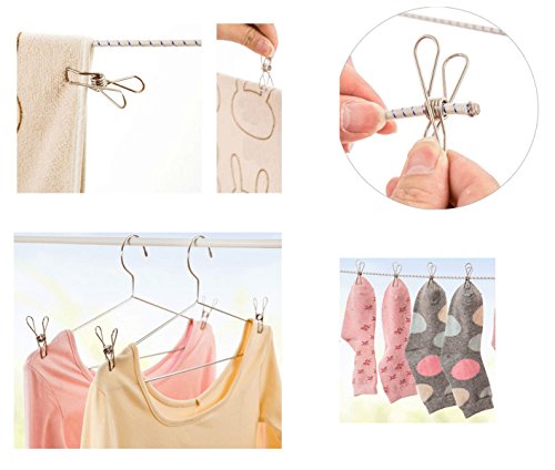 Stainless Steel Multi-purpose Clothesline Utility Wire Hanging Hook Clips Holder Clothes Pins for Home Office Use (20 Count)