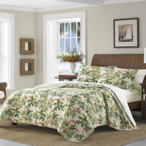 Studio : Revman International Publisher : Revman International Binding : Kitchen Product Description Create an island Resort you can experience year round in your own bedroom with this tropical print quilt from Tommy Bahama. This beautifully detailed botanical design features tropical foliage in fresh greens accented with bright coral orchids on a crisp white ground. A green and white lattice print reverse adds a decorator touch and also trims the edges of the quilt for a clean, tailored finish. Ogee quilting adds dimension and comfort to this all cotton quilt that is pre-washed for extra softness. 0