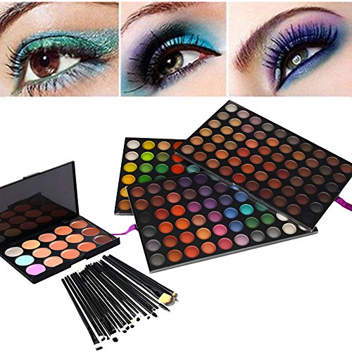 Feature : Cream concealers that offer terrific coverage on the dark circles, facial wrinkles and other facial defects and give you a new look. / This include 20 pcs brushes for eyes,lip and so on,which includes all the basics you need for daily applications. / Eye shadow makeup palette offers a complete assortment of eye shadows / Package Includes: 1 x 15 Colors Concealer Palette; 1 x 20 Pcs Makeup Brush; 1 x 180 Colors Eyeshadow Palette