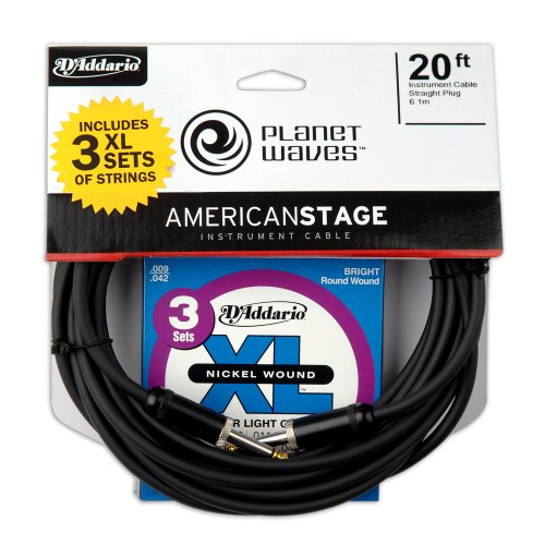 Planet Waves 20 foot American Stage Guitar Cable with Free D'Addario XL Super Light 3 pack