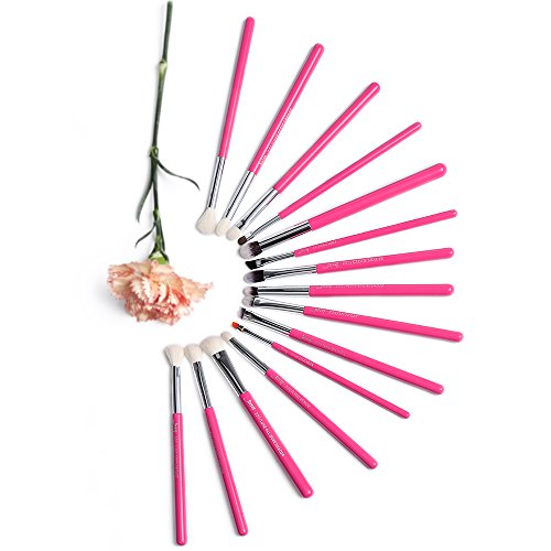 Jessup 15pcs Eyeliner Makeup Brush Tool Kit Cream Eye shadow Lipstick Pencil Fiber hair Brushes Set Rose carmin/Silver T197