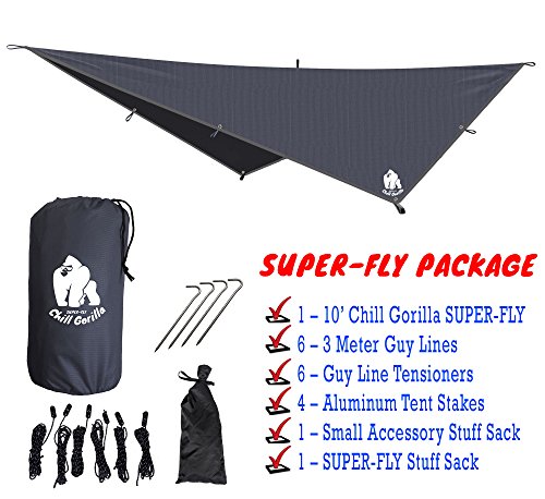 ✔ CHILL GORILLA CRUSHES THE COMPETION! EASILY THE BEST VALUE FOR YOUR MONEY! Compare our hammock rain fly to Kelty, Bear Butt(smaller and made from polyester), Eagles Nest Outfitters, YuEdge, Vigor, Ultimate Survival Technologies, ENO, Himal, Rolling Fox, W-UpBird, Hennessy, Yukon, Grand Trunk, Hang Tight, Kammok, etc. SAVE YOUR MONEY, TIME & HASSLE because when it comes to quality and value Chill Gorilla is the rain fly and hammock tarp king of the jungle! Click ADD TO CART Button Now!