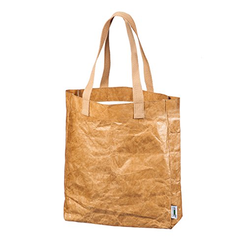 -. Feature : This brown Tyvek reusable tote is the epitome of eco-friendly chic / Crafted from tear-resistant, water-repellant textile / Holds between 4 and 6.5 lbs. / Wipe clean with damp cloth / Measures approximately 10.63 x 4 x 3.15 inches