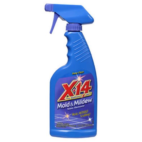 16 oz, x-14 mildew stain remover, trigger spray bottle, removes tough mildew stains without scrubbing, the bathroom expert