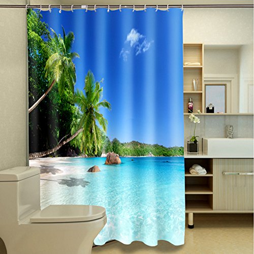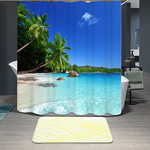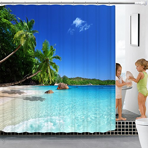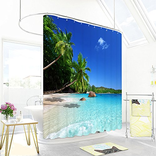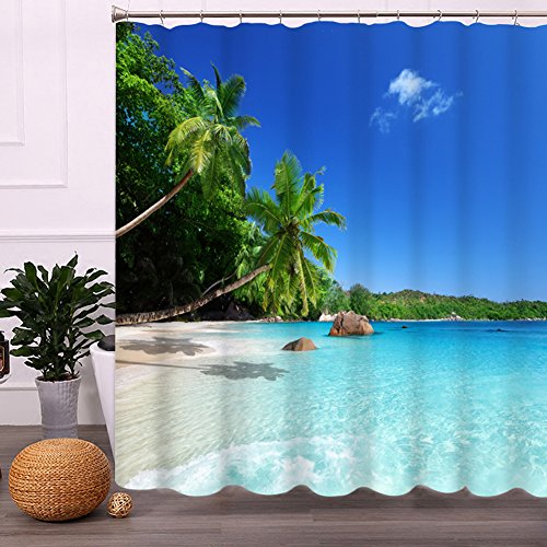 Mildew Resistant Seaside Curtains Shower, Malicosmile Beach Coast Palm Shower Curtain for Bathroom Washable, 70.8 x 70.8 Inch