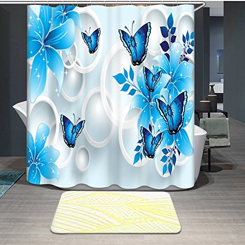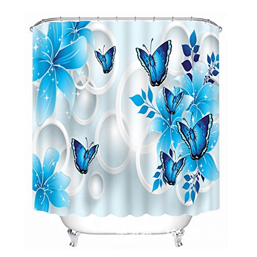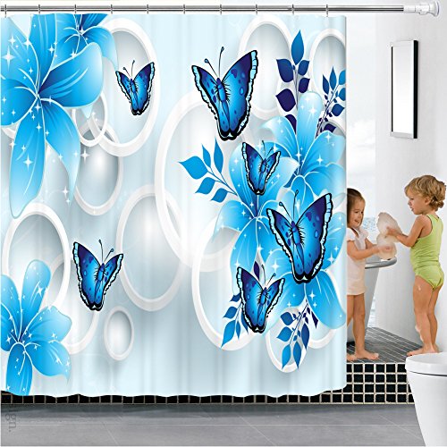 Butterfly Shower Curtain Blue, Malicosmile Waterproof Non Mildew Bathroom Curtains for Shower with Hooks, 70.8 x 70.8 Inch