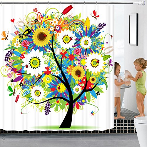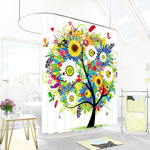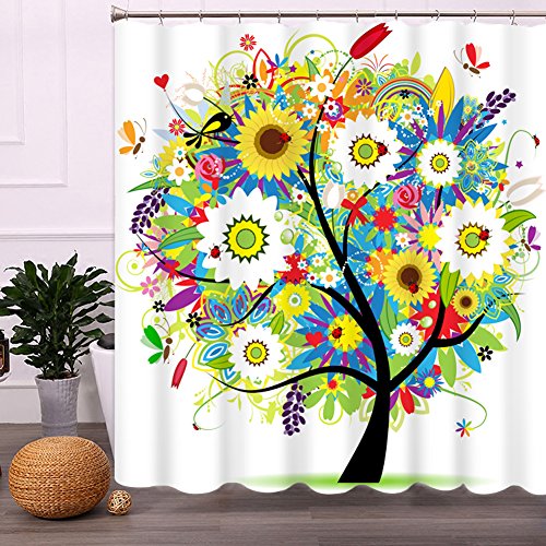 Colorful Tree Shower Curtain with Hooks, Malicosmile Non-toxic Bright Colored Flowers Curtains Shower for Bathroom 70.8 x 70.8 Inch
