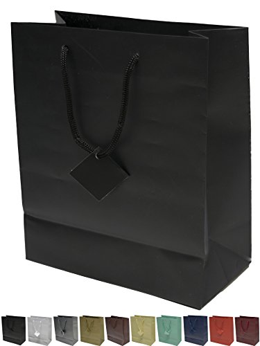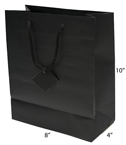 Novel Box® Black Matte Laminated Euro Tote Paper Gift Bag Bundle 8"X4"X10" (10 Count) + NB Cleaning Cloth