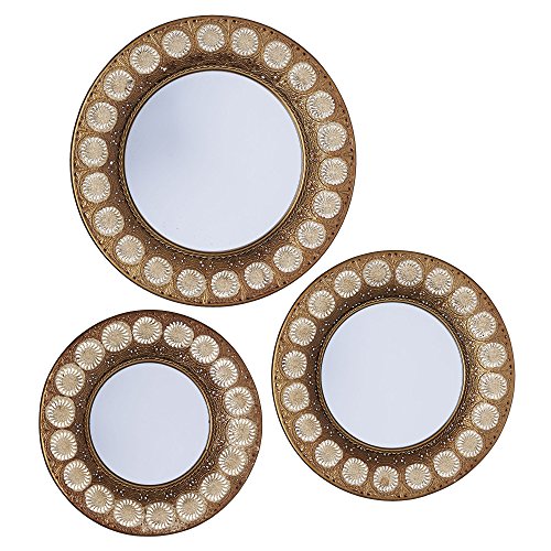 Household Essentials Round Decorative Sunburst Wall Mirror Set Of 3, Gold