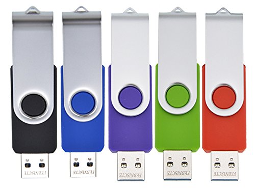 FEBNISCTE 5Pack 8GB Swivel USB 2.0 Flash Drive Memory Stick (5 Mixed Colors: Blue Black Green Purple Red)