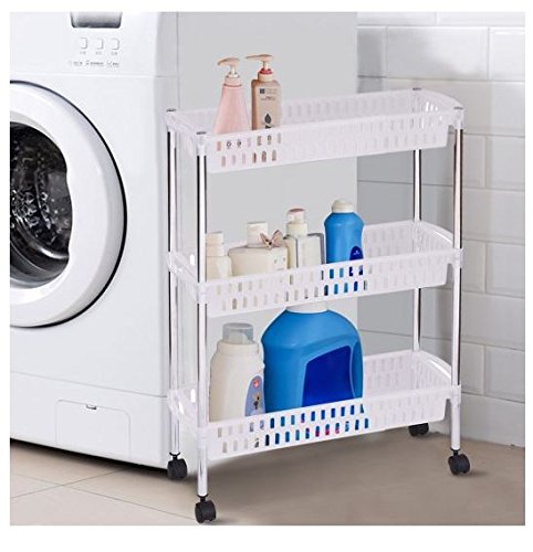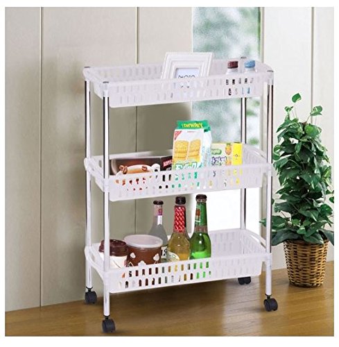 Studio : md group Publisher : md group Binding : Office Product Product Description Specifications Color: As pictures show Material: Galvanized steel frame and plastic baskets Overall dimension: 21" x 7" x 26.4" (L x W x H) Inner size of each basket: 17.7" x 6.0" x 2.5" (L x W x D) Diameter of wheels: 1.2" Product weight: 19.8 lbs Package includes: 1 x trolley cart