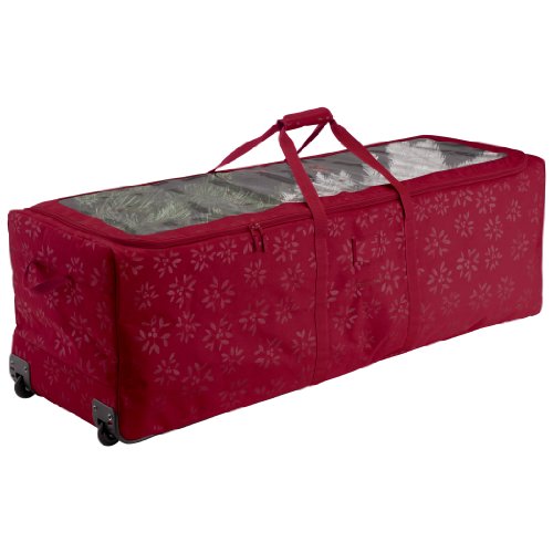 -. Feature : Sturdy rolling duffel holds and protects artificial trees / 58-inch by 17-1/2-inch by 17-1/2-inch high duffel holds sectional artificial trees 6-feet to 9-feet tall / Nice extra touches, holiday inspired debossed fabric / Clear identification sleeve, three year limited warranty / Holds sectional artificial trees 6-feet to 9-feet tall / Does not include contents shown in photos