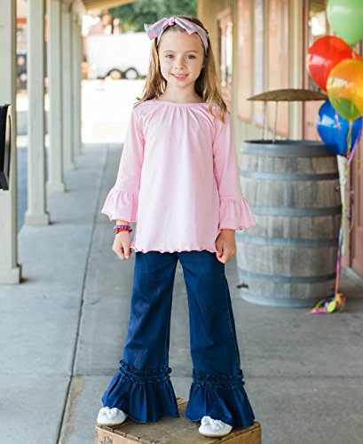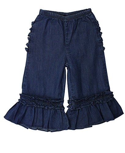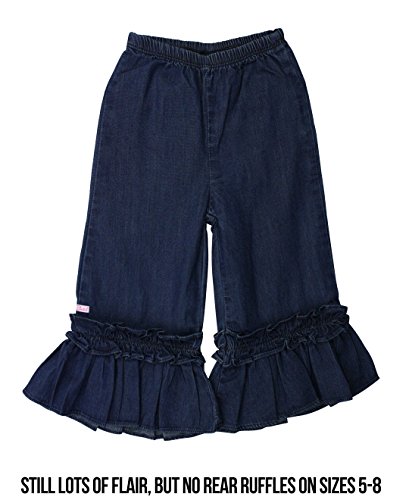 -. Binding : Apparel -. Brand : RuffleButts -. Color : Blue -. Department : baby-girls -. Feature : Sizes 5 and larger are designed without ruffles on the rear to give these pants a more grown up look / This RuffleButts product is backed by our 100% Happiness Guarantee / Certain to create compliments whenever worn / Indigo Blue Special Care: This denim product is made with dye that may result in color transfer when wearing or washing. Before wear, please wash denim inside-out by itself or with other dark colors in cold water. -. Label : RuffleButts -. Manufacturer : RuffleButts -. Model : GPDDBXX-1R00-BABY -. MPN : GPDDBXX-1R00-BABY -. NumberOfItems : 1 -. PackageQuantity : 1 -. PartNumber : GPDDBXX-1R00-BABY -. ProductGroup : Apparel -. ProductTypeName : PANTS -. Publisher : RuffleButts -. Studio : RuffleButts -. Title : RuffleButts® Infant / Toddler Girls Denim Wide Leg Pants w/ Elastic Waist & Ruffles