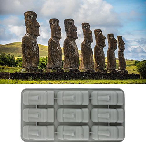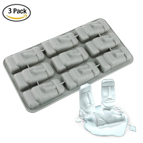 Gray Freeze Ice Mold Tray-Ice Cube Lattice Silicone-Easter Island Head shape-Pack of 3