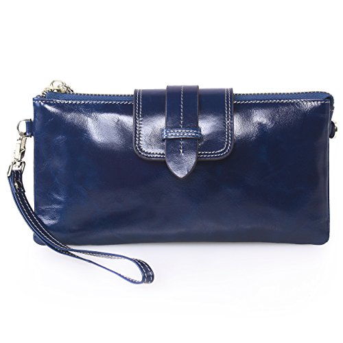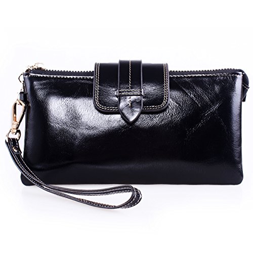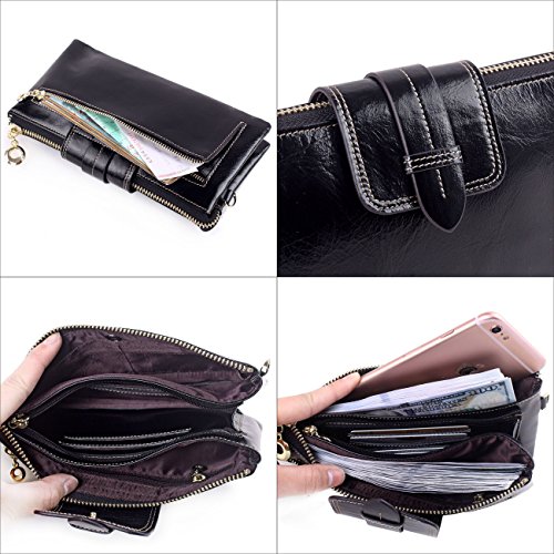 -. Feature : 100% Oil Waxy Genuine Leather Wallet. Made of high quality top grain oil wax cowhide, the top grain oil wax leather makes the purse more luxury and comfortable. / Measures - (L)7.88" x (W)4.13" x (H)1.57" inches / Organizer Building - Functional with 8 Credit Card Slots.2 large bills pocket.1 zippered pocket in back. 2 Full length pockets with zippered also can carry change or coin. Comes with a long and removable chain shoulder strap and a detachable wrist strap, so can be used as wristlet wallet. Can carry your Samsung Galaxy Note, Iphone6s, Iphone6 Plus, key, makeups and other daily thing with you. / Great As Gift - Nice present to friends, family on birthday, festivals.