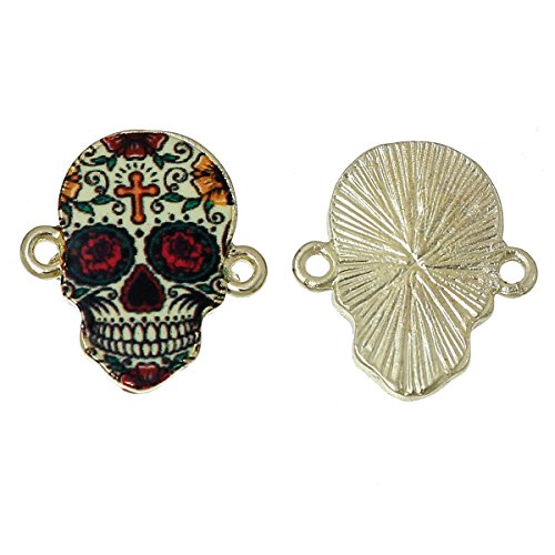 10 Pc Day of the Dead Sugar Skulls Tag Connectors, Gold Tone - Findings, DIY Crafts, Jewelry Making, Charms
