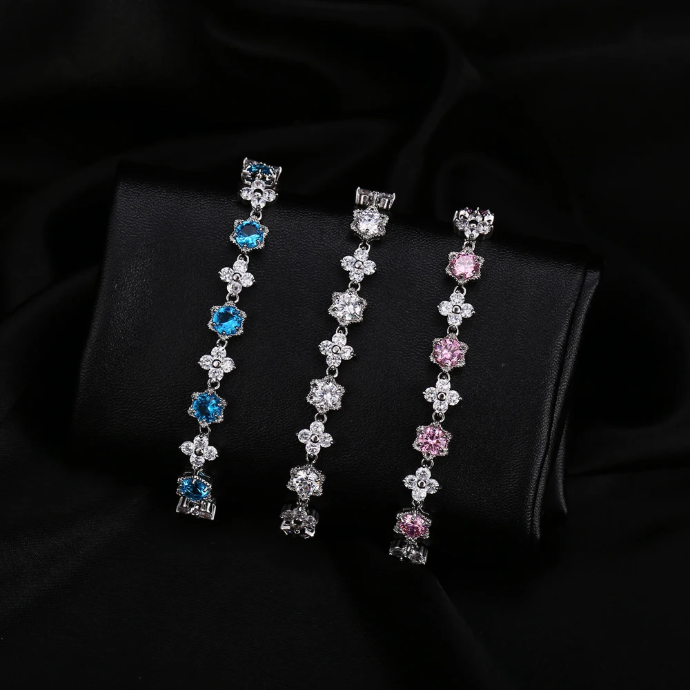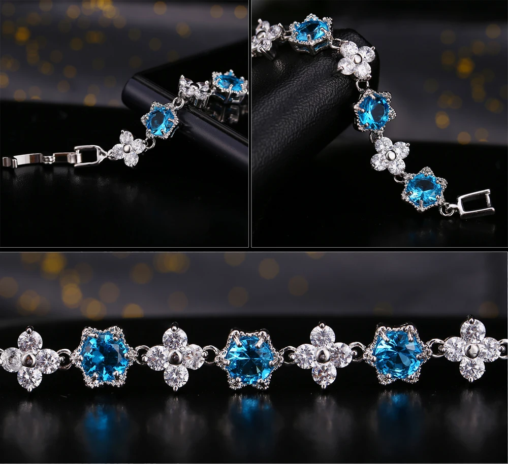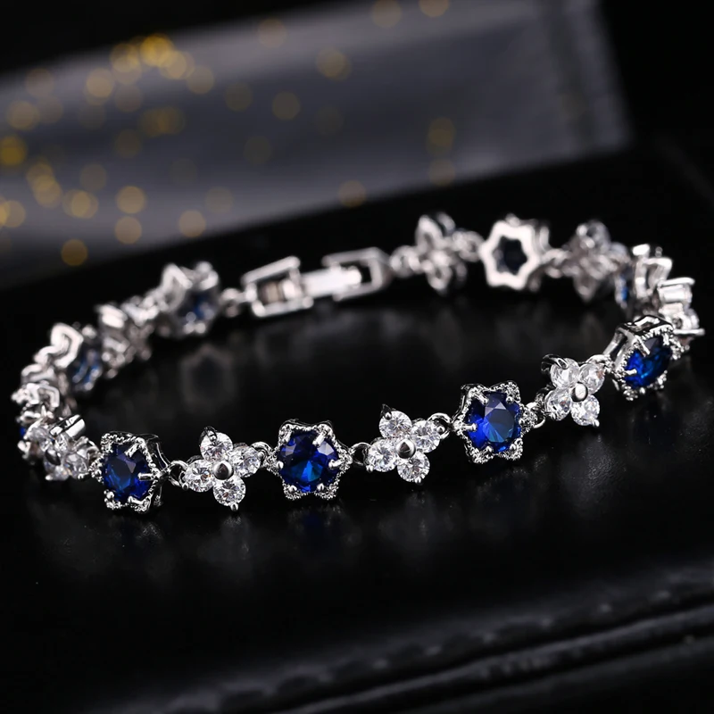 Item Name :Sterling Silver Bracelet,Flower Blue Bracelets