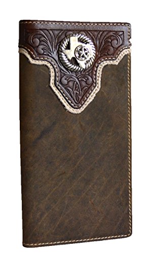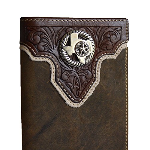 -. Binding : Apparel -. Brand : Stony West -. Department : mens -. Feature : Genuine leather body with contrasting trim Texas state map tall wallet / Exterior slip pocket for receipts / 13 credit card slots, 5 clear card slots / Interior 4 compartments for cash or receipts, Clear ID holder / Measurements: 7 1/4" x 3 1/2" x 1/2", Comes in a gift box -. ProductGroup : Apparel -. ProductTypeName : ACCESSORY -. Size : Small -. Title : Men western texas star state map concho slim leather long bifold wallet