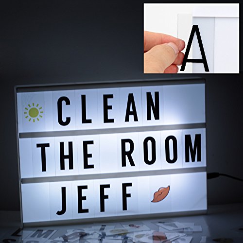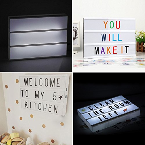 【Features】 1.Fantastic LED cinema light box with 203 free combination letters,numbers and symbols 2.Fully personalisable light box sign. Create your own message by sliding letters on and off. Such as I LOVE YOU,SWEAT HEART,GOOD NIGHT and anything you would like to show. JUST PLAY YOUR CREATIVITY 3.Table or wall mounting option 4.This brilliant light box has a real cinematic feel.Widely used for kinds of occasions,such as Home Decor, Wedding decorations,Party, Birthday, Celebrations, Movie Nights, Wall decor,interior decoration,outdoor decoration.It can also be a wonderful gift for your friend or lover.